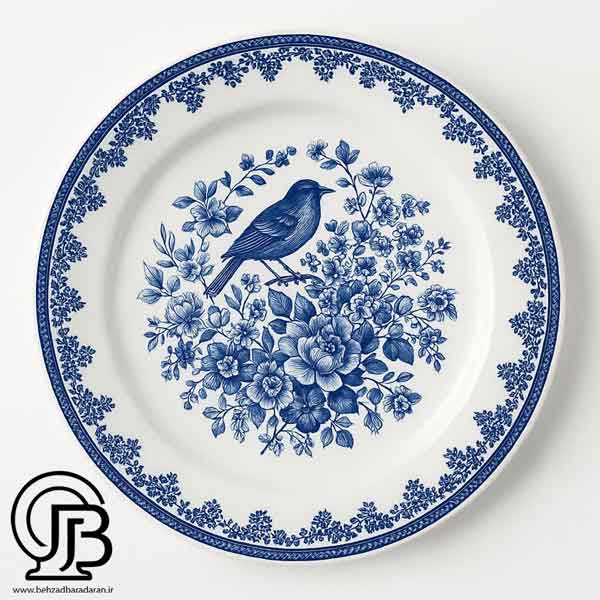 بشقاب چینی طرح کلاسیک آبی و سفید